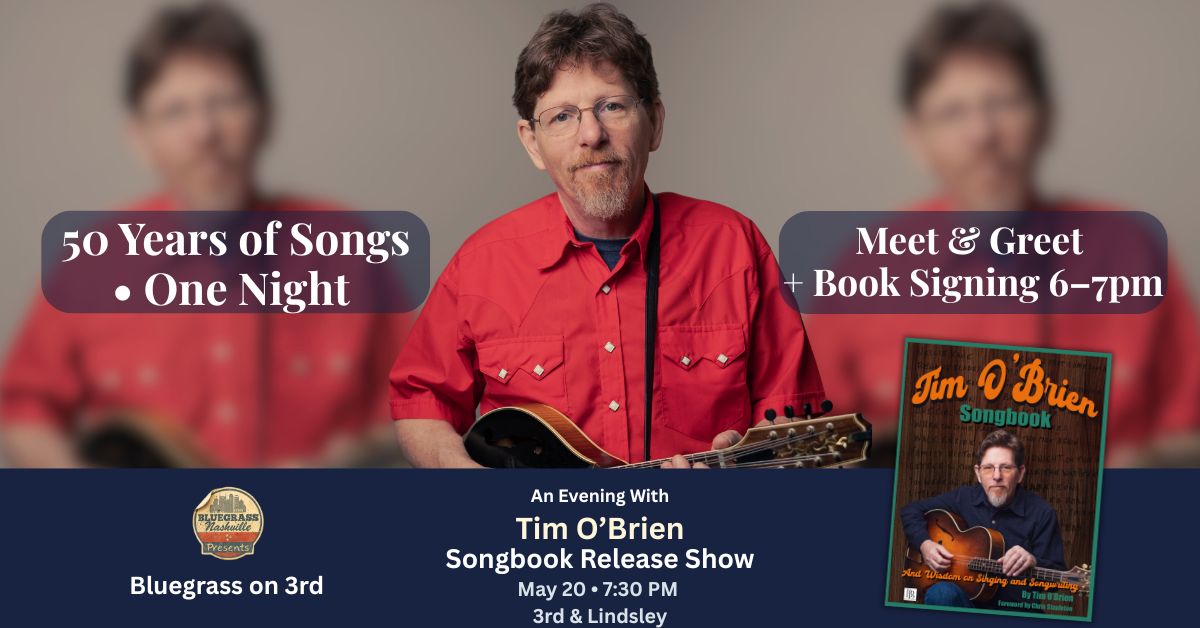Bluegrass Nashville is proud to present a very special Bluegrass on 3rd concert at 3rd & Lindsley — a career-spanning, twenty-song performance celebrating the release of the Tim O’Brien Songbook.